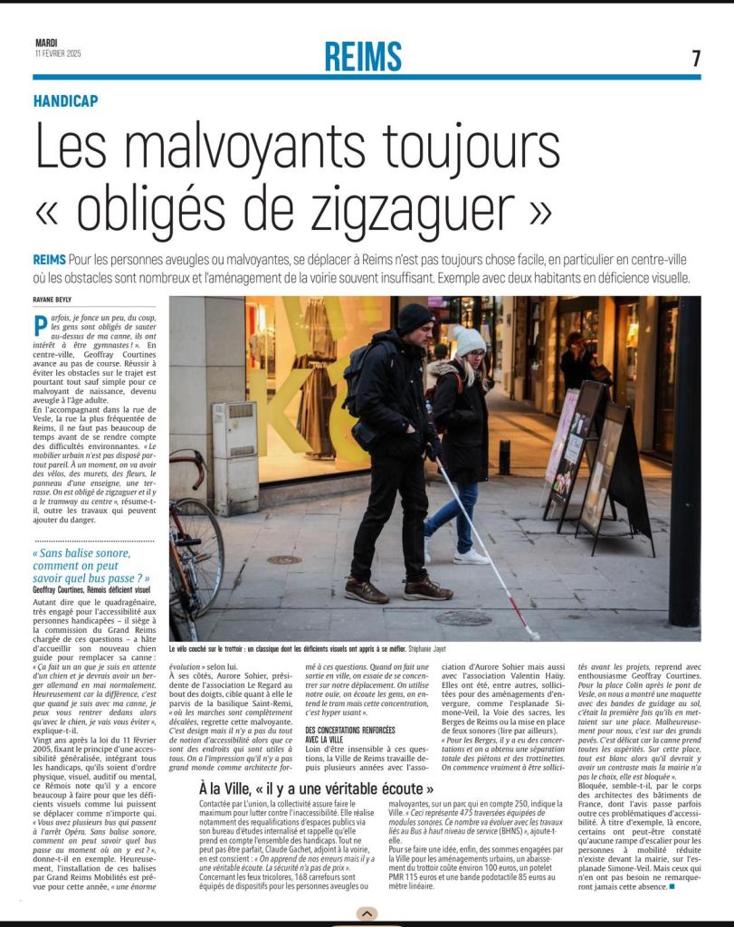 L’UNION REIMS – 11 février 2025 : les malvoyants toujours obligés de zigzaguer