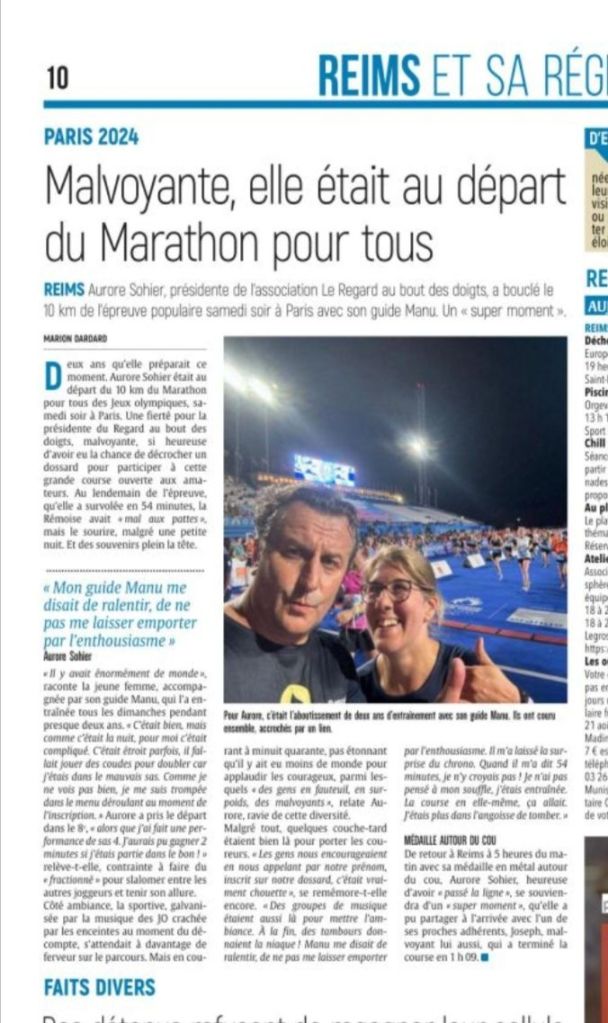 L’UNION REIMS – lundi 12 août 2024 : https://www.lunion.fr/id629584/article/2024-08-11/paris-2024-deux-remois-malvoyants-ont-boucle-le-10-km-du-marathon-pour-tous